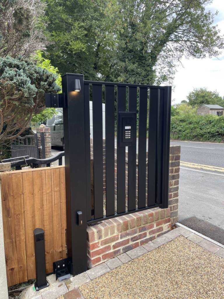 The intercom unit selected by the architect was originally designed to be surface-mounted on a solid brick wall. However, for this project it needed to be integrated seamlessly into the aluminium fencing. This demanded precision fitting, careful sealing, and modification to ensure no water ingress could occur. The panel had to be recessed into the aluminium fencing while maintaining rigid structural support. Despite the difficulty, the intercom was installed securely and with a flush finish consistent with the rest of the fencing. The result is both functional and visually harmonious, blending seamlessly into the fence line.